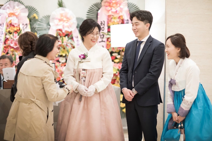 어머님들은 한복, 아버님들은 예복.