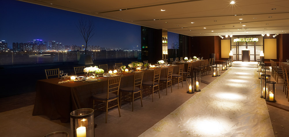 이곳을 보고 처음에 딱 들었던 생각은 역시 63빌딩처럼 '높고 웅장하다'는 느낌이었습니다. 거기에다가 고급스러운 호텔식으로 진행되어 럭셔리함까지 느껴지는군요 그렇지만 이런 많은 분들이 이곳을 찾는 진짜 이유는 매혹적인 한강 야경을 보면서 결혼식을 올릴 수 있기 때문입니다! 아름다운 야경을 보면서 하는 결혼식 생각만 해도 로맨틱해지지 않나요?